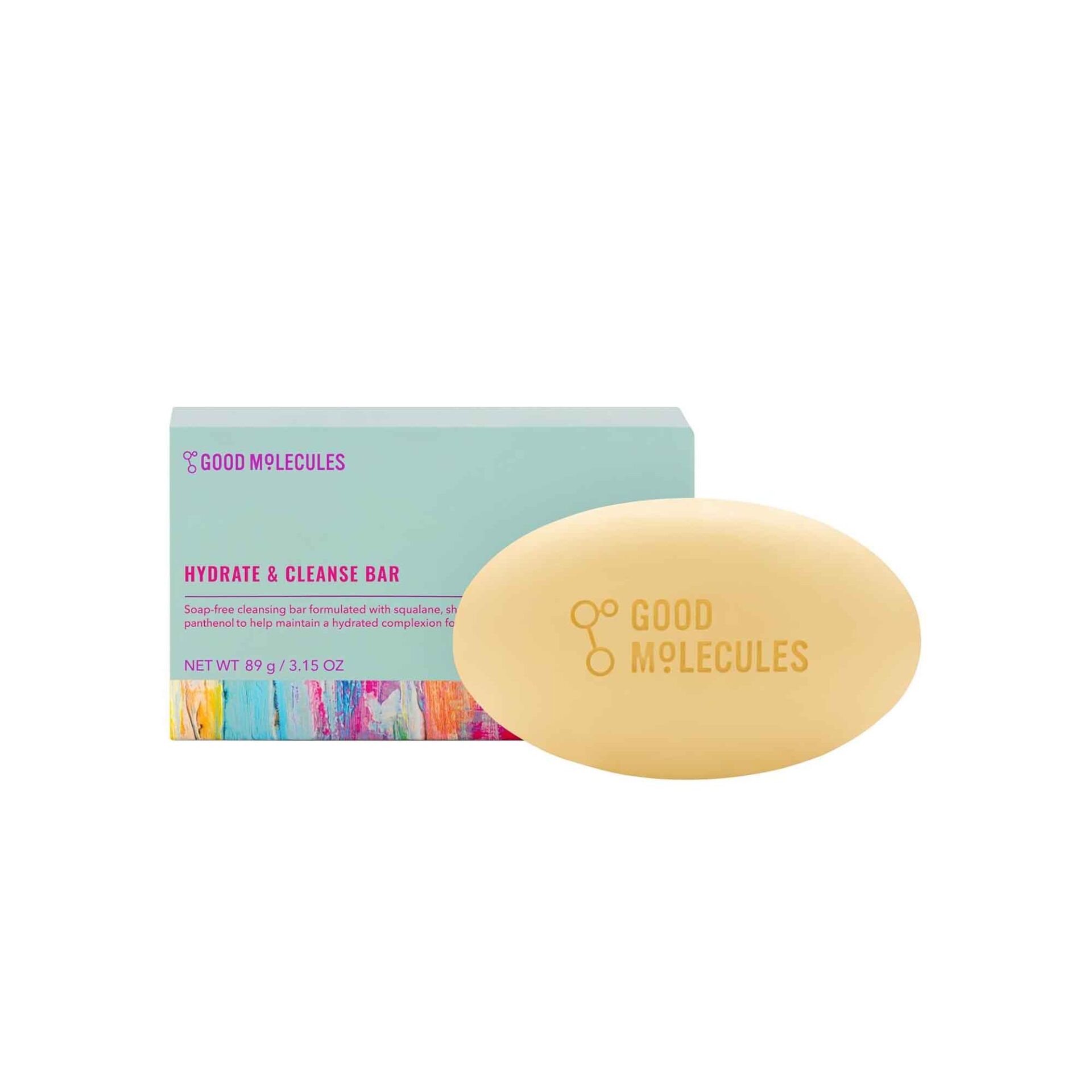 The Good Molecules Hydrate and Cleanse Bar is a gentle, soap-free cleansing bar designed to effectively clean both the body and face while delivering intense hydration. This ultra-moisturizing formula is crafted to leave your skin feeling soft, smooth, and nourished, never dry or stripped.