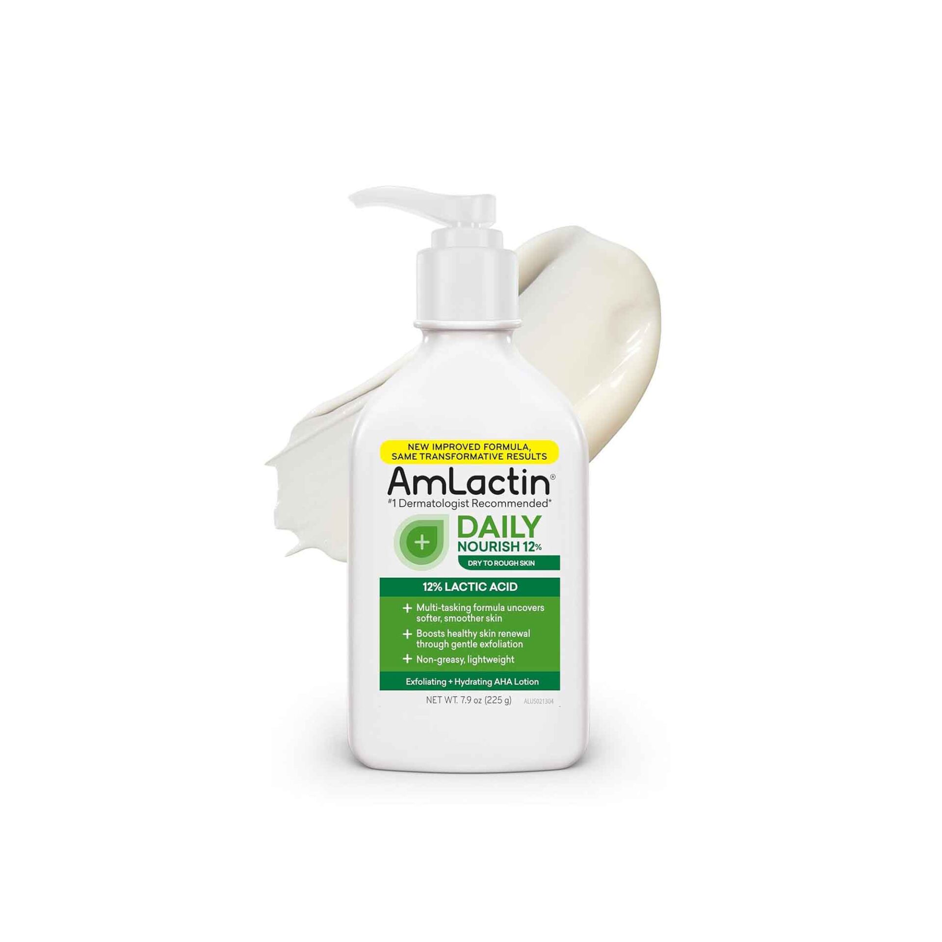 Amlactin Daily Nourish 12% Lactic Acid Exfoliating + Hydrating AHA Lotion 567g. Amlactin Moisturizing Body Lotion 7oz contain the powerful Alpha-Hydroxy Therapy to gently exfoliate and deeply hydrate rough, dry skin. Say goodbye to rough, dry skin with AmLactin’s dermatologist-recommended body lotion.