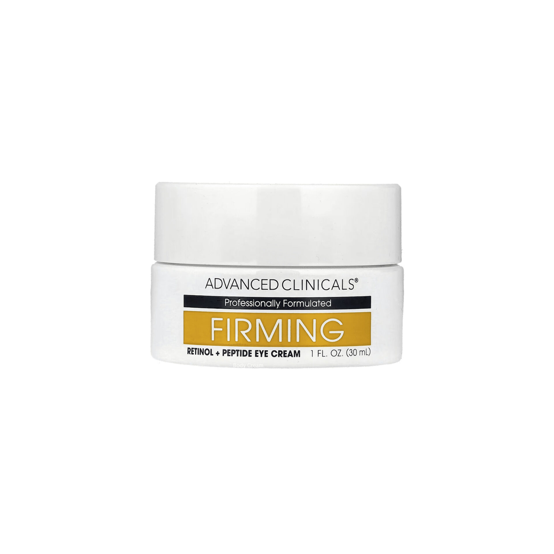 Advanced Clinicals Firming Retinol + Peptide Eye Cream 30 ml is a targeted eye treatment formulated to support firmer, more lifted skin around the delicate orbital area. It combines retinol to accelerate cell turnover with peptides to reinforce structural integrity, helping reduce the appearance of fine lines, wrinkles, and crepiness. The rich yet absorbent texture delivers hydration while smoothing and strengthening the skin barrier. Regular use enhances elasticity, refines texture, and improves overall eye area firmness for a more youthful, refreshed appearance.