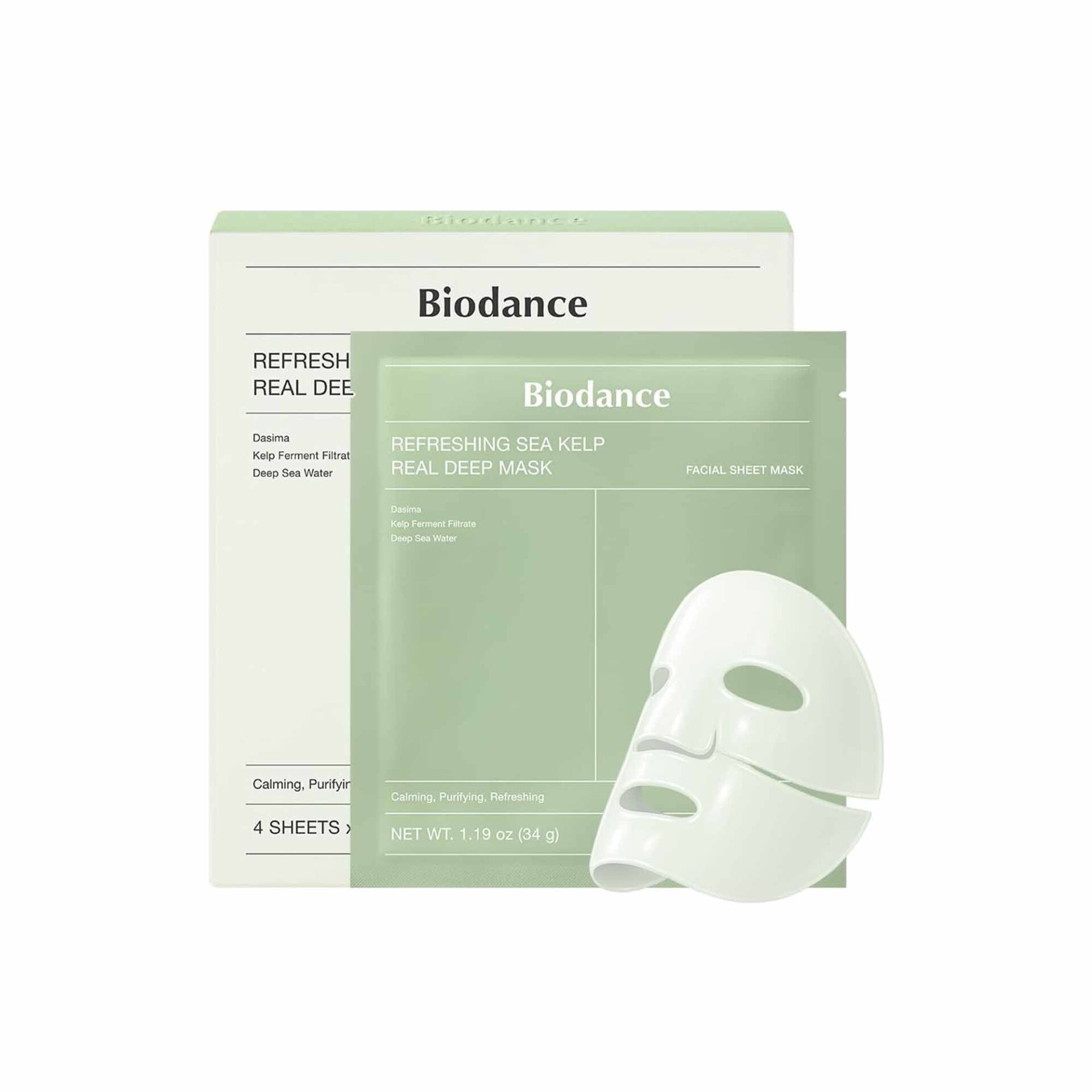 BIODANCE Refreshing Sea kelp Real Deep Mask, Overnight Hydrogel Mask, Calming, Oil & Sebum Control, Blemish Care, Korean Skin Care, Gifts for Women | 1.19oz(34g) x 4ea